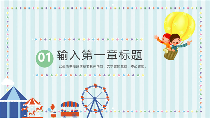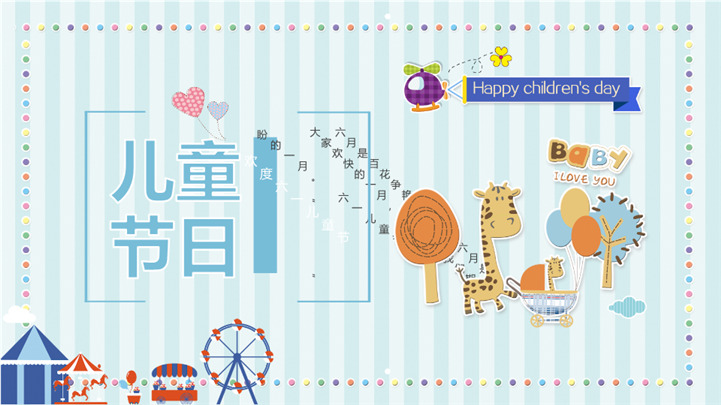 清新条纹卡通风六一儿童节游乐园主题ppt模板