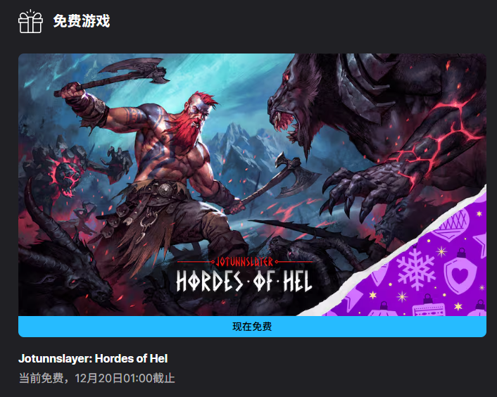 领取地址:https://store.epicgames.com/zh-CN/p/jotunnslayer-hordes-of-hel-3579b3