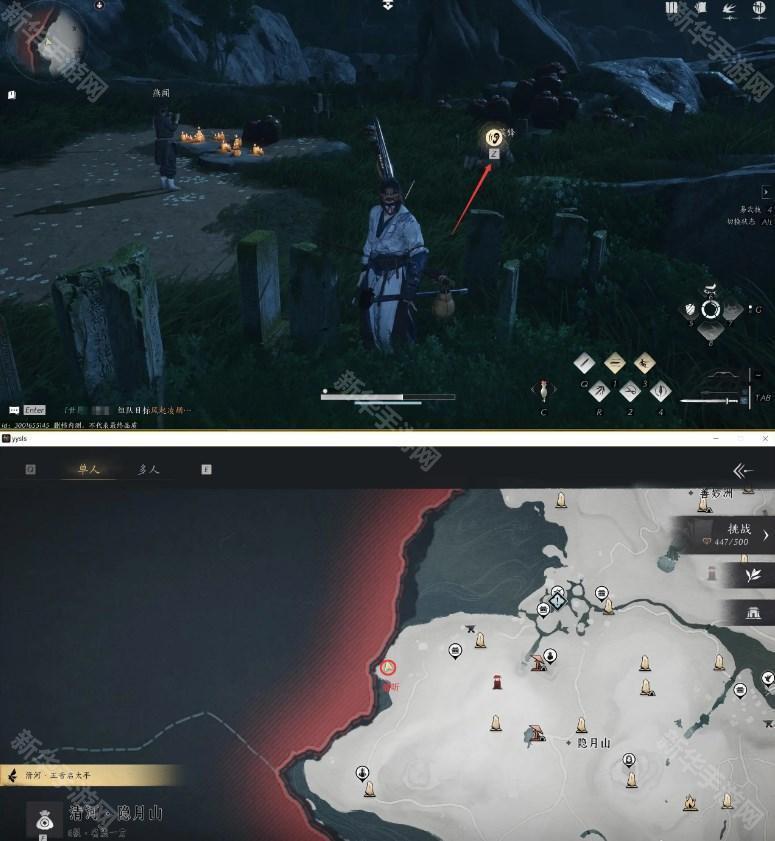 4、一路跟踪去燕藏锋墓地,在如图位置“偷听”。