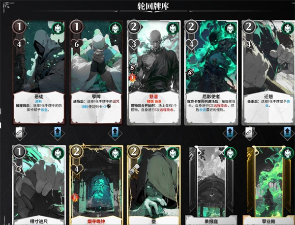 前期推荐卡牌:恶徒(非常不建议升级)恶徒不仅可以作为炮灰抗住一次性攻击,更是为精锐打上恶业buff的核心,无论前期还是后期都是此体系核心,建议多拿几张恶徒一方面是可以作为炮灰,另一方面就是防止这个构史抽牌机制。