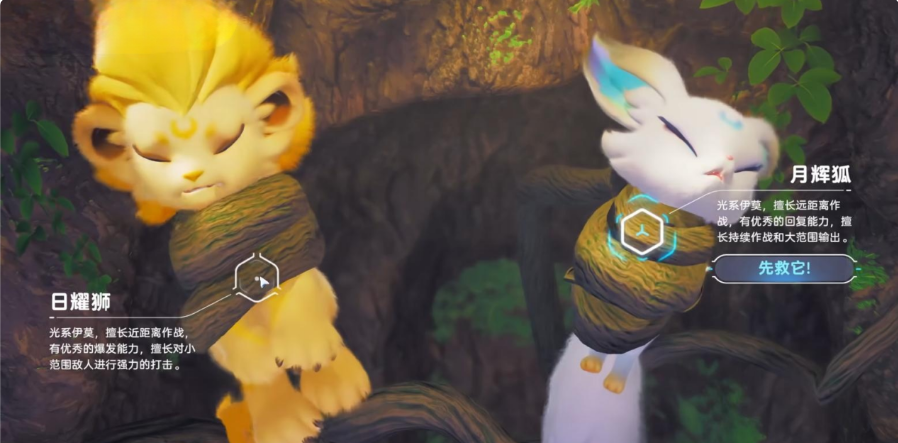 在《伊莫》手游中,日耀狮是玩家早期即可获取的稀有光属性宠物,具备语音交互设定,辨识度高、人气稳定。其获取路径明确:需完成主线任务推进至“藤蔓纠缠”区域,该地图同时刷新日耀狮与月灰狐两只光系宠物——前者专注近身压制,后者侧重远程牵制,二者定位互补,但战斗逻辑截然不同。