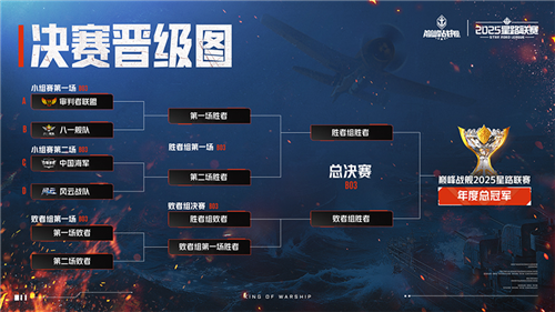 为决出年度最强舰队,总决赛将采用竞技性极强的 BO3双败淘汰制。四强舰队将分为两组展开首轮对决,随后胜者组与败者组并行展开激烈角逐:胜者组队伍直指决赛席位,败者组则需经历更为残酷的"背水一战",争夺另一决赛名额。这一赛制最大限度地减少了偶然性,全面考验舰队在连续高压对战中的战术储备、应变能力与心理韧性,确保最终挺进冠军战的两支队伍,皆是历经多重考验的绝对强者。