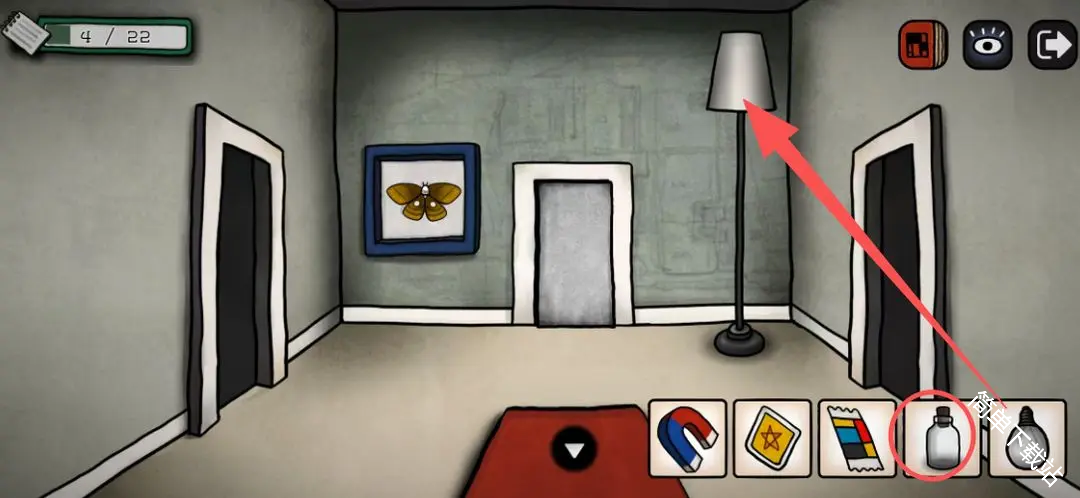 8、在红毯的房间,把灯泡换上去,然后用瓶子把蝴蝶装起来