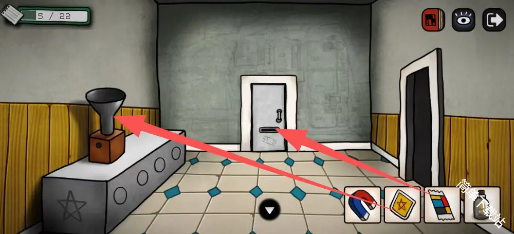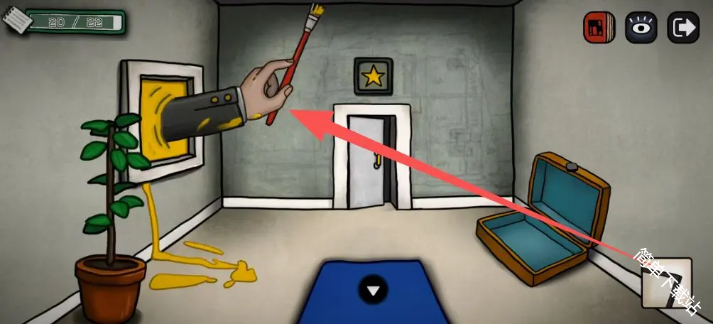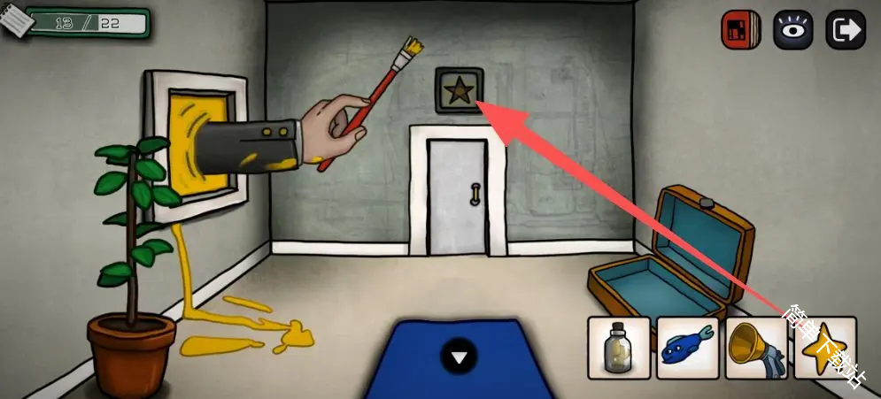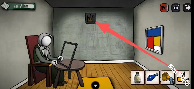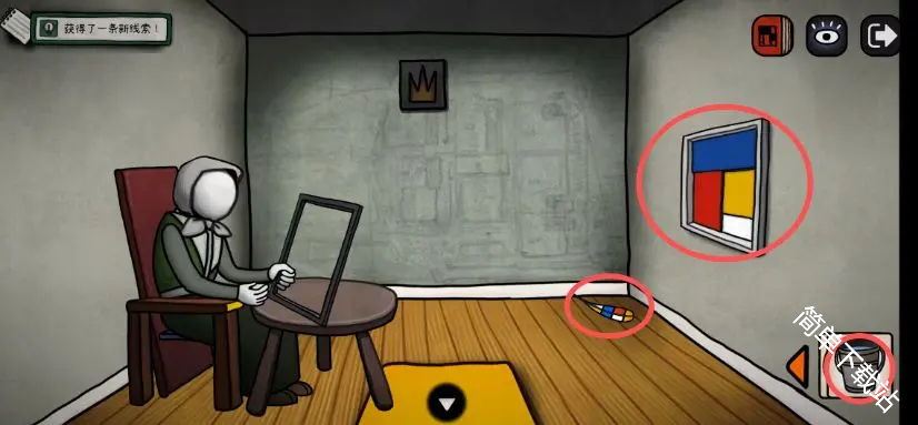 5、进去之后点几次这个画,画掉了之后获得道具手电筒