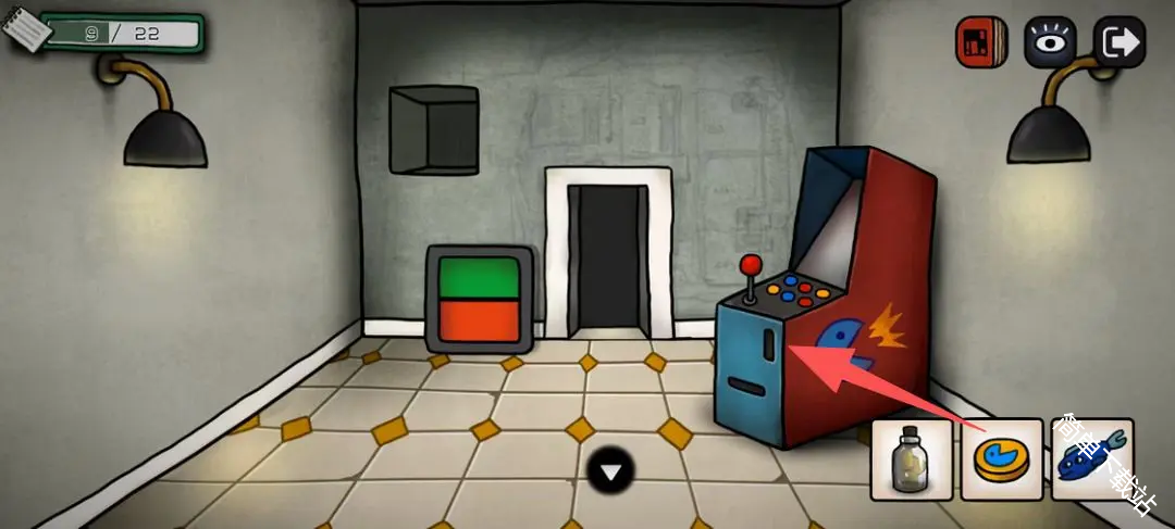 12、获得道具鱼竿,这里彩球获得的线索用来开红毯房间的门,就是那个扑棱蛾子飞灯泡,飞走后的密码