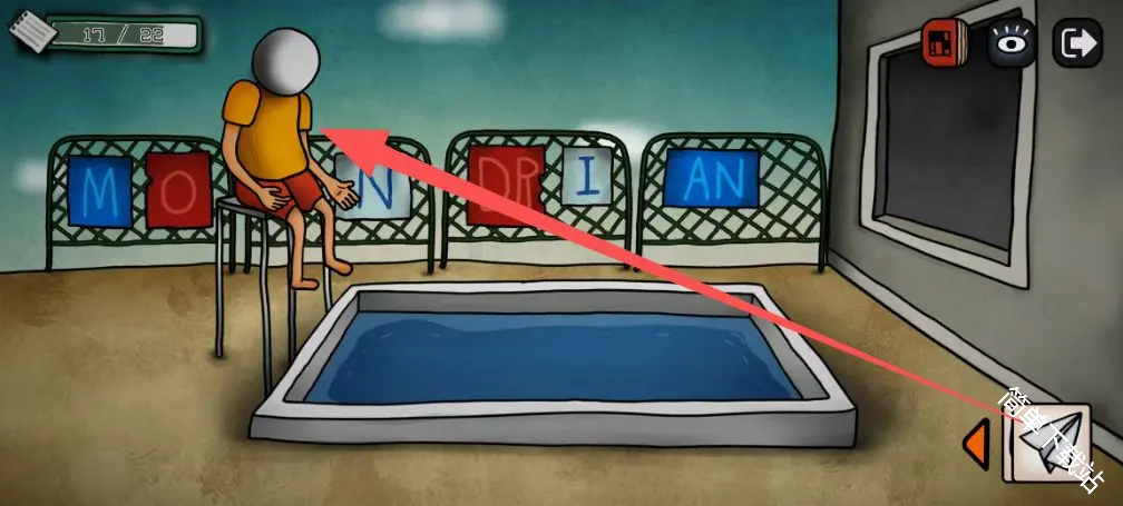 18、在画笔的这个房间开箱子,获得1个零件和1个清理泳池的道具