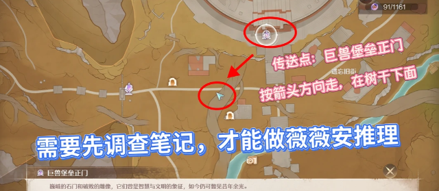 如果做不了推理,就要先去调查笔记,在巨兽堡垒正门传送点,然后往下走