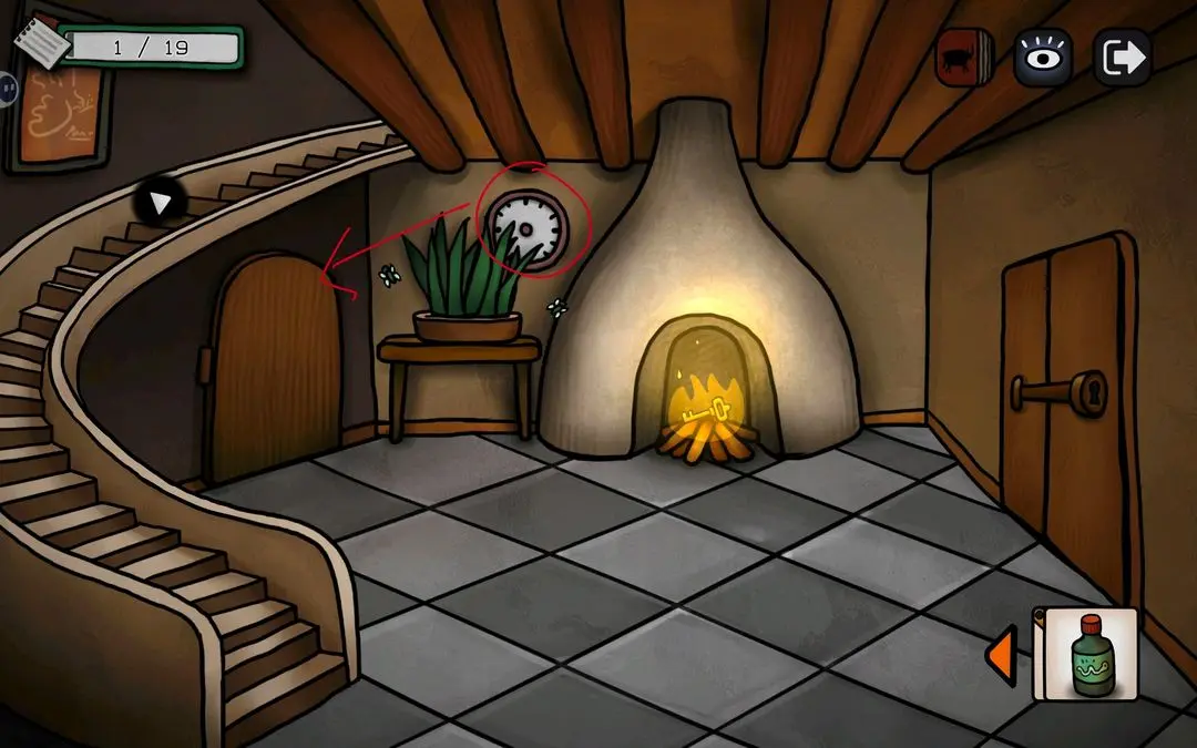 14、拿走空牛奶壶,浇灭壁炉,取钥匙,再用钥匙打开右边的锁