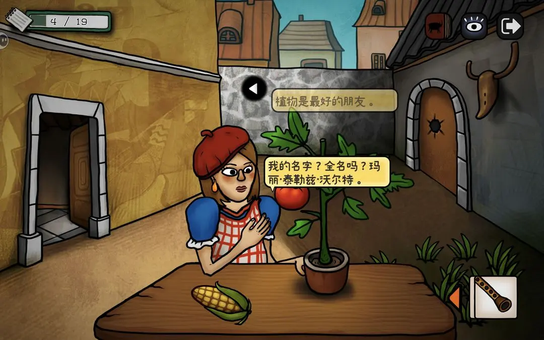20、去院子里,点击玛丽身后的小路,再次看到公牛,把蜡笔给它