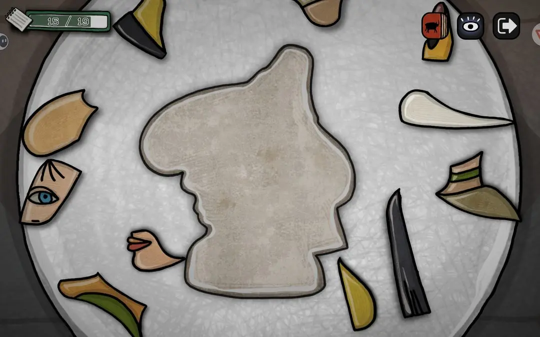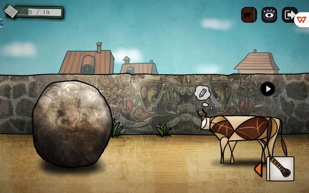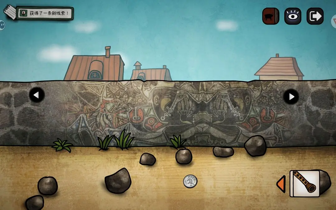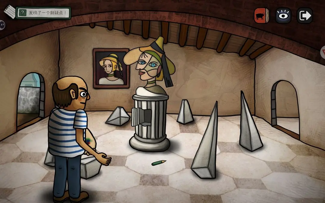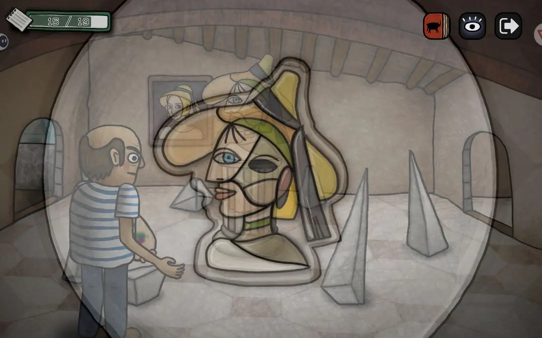 (右上角这个石壁可以点出裂缝,多点几次会出现一个雕塑,解锁成就【立体主义探险家】)