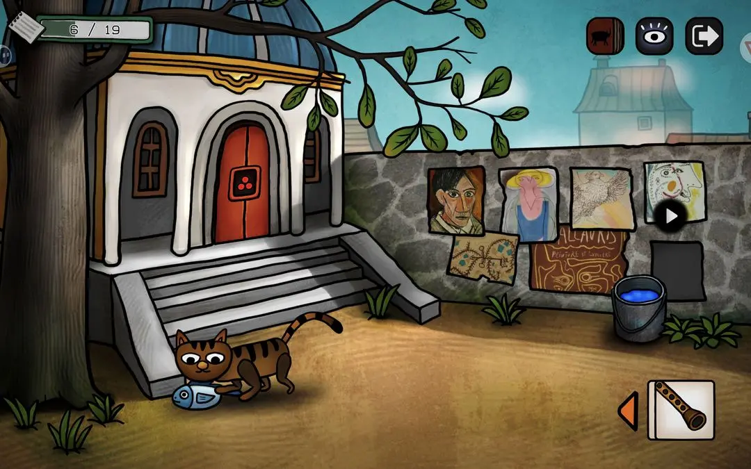 27、回到剧院大门口,用蝴蝶吸引小猫,得到鱼