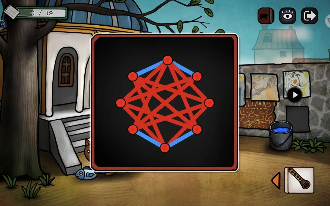 23、到小猫场景,点击左边的门,移动端点使所有线条中间不相交