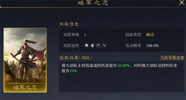 提供全队统率加成,兼顾输出与防御