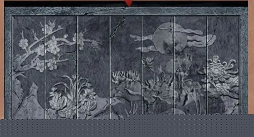 12.完成地上石槽的拼图,结果如图所示。完成拼图后,拼图中的花与石槽中的字相对应。根据石槽拼图和石槽中的字的对应关系,完成盒子的机关,答案如图所示。
