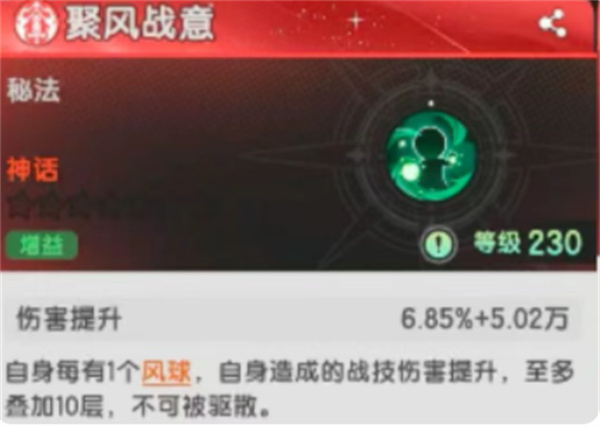 聚风战意:风球越多,战技伤害越高;适配风球流打法