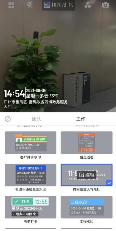 第三步,切换水印。马克水印相机支持各种水印模板免费切换使用,拍摄视频时,如果想要切换水印,只需点击【水印】图标,就可以在模板库中选择自己想要的水印。