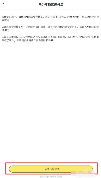 点击界面下方的开启青少年模式按钮。