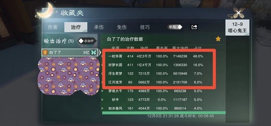 目前愈梦的治疗比例基本就是图那样,两个典型boss万老二红盾类boss,和龙老二高疗频boss,基本都是以绝学为主,小技能奶为辅,所以说就两个要素,一个是提升绝学速度(刷怒气),一个是提升整体奶量(培养)。