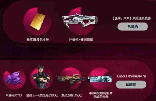 针对逆战端游的老玩家,逆战未来特别设立了老兵回归福利。玩家在预约后可以绑定自己的原有端游账号,从而领取包括冲锋枪、抽奖道具在内的回归礼包。