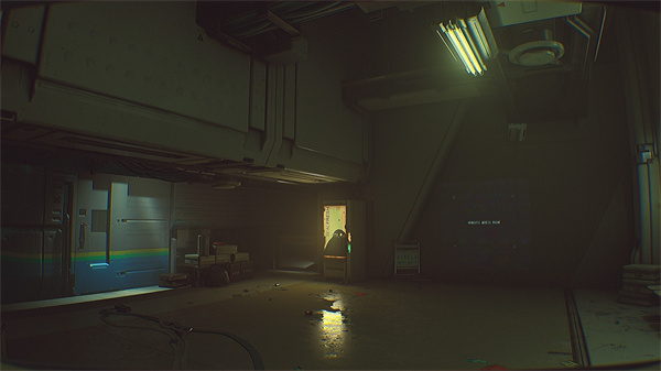 在沿着IC指引的梯子下降后,你会进入一个漆黑的房间,前方的门会猛然关闭。