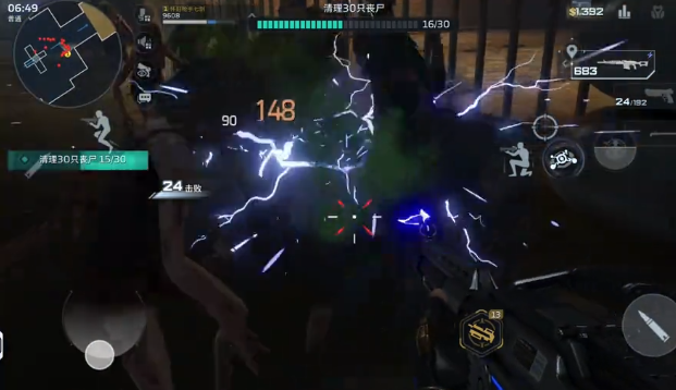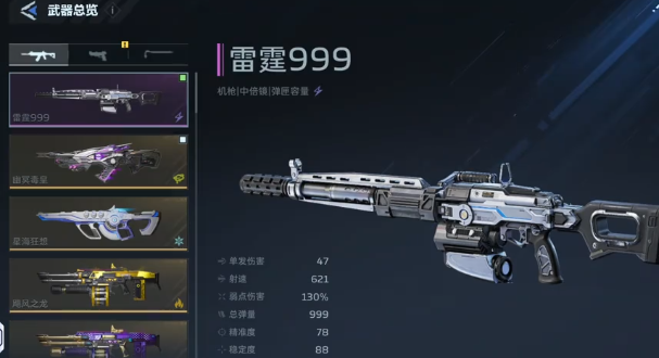 主武器推荐使用雷霆999。该枪拥有高达99发的初始弹匣容量,配合较长的持续射击时间,大幅降低换弹频率,有效缓解新手操作压力。其主动技能“闪电链”具备范围连锁判定机制:首次命中目标后,电流可向半径2.5米内最多3名敌人跳跃,每次跳跃造成基础伤害的70%,并附加1.5秒感电效果。在清剿密集小兵或应对突袭时,该技能能显著提升单次输出效率与生存容错率。