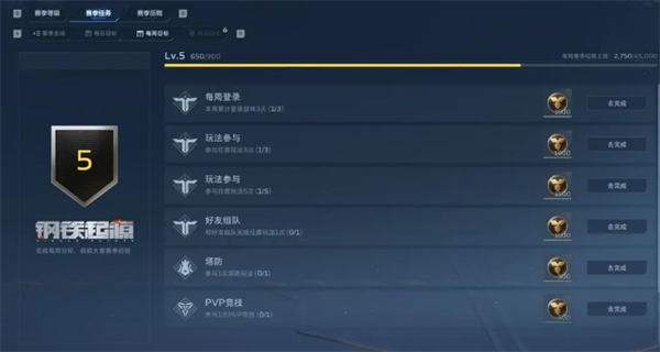 赛季主线和每周目标:赛季主线会给大量的插件,每周目标会给大量的经验。