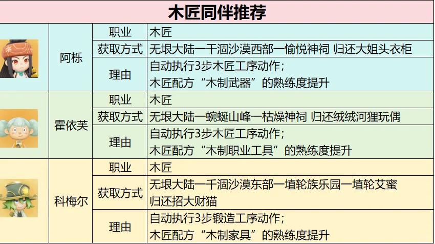 理由:自动执行3步木匠工序动作;木匠配方“木制职业工具”的熟练度提升
