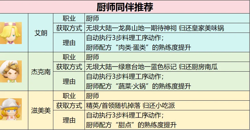 理由:自动执行3步料理工序动作;厨师配方“甜点”的熟练度提升