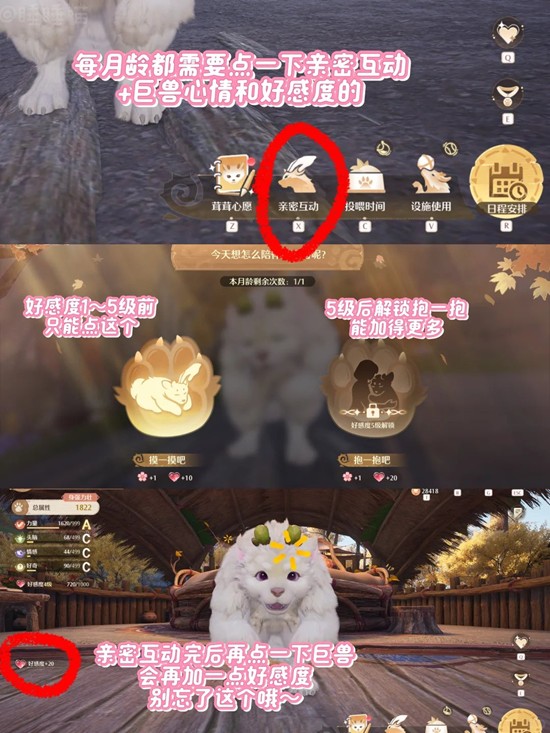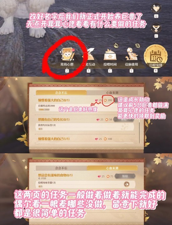 开启的第一天会随着剧情送我们一只巨兽,养成后送别它离开还能再领养2只