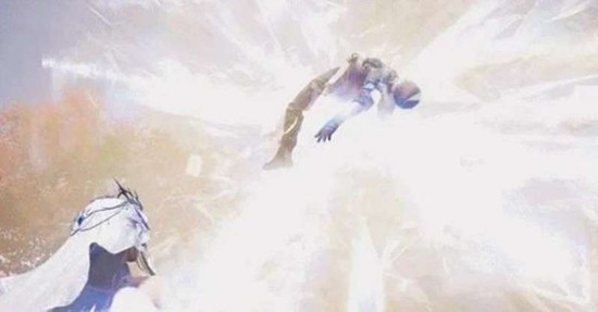 其配套的特殊处决动作同样延续了主题风格。角色会单膝跪地呈祈祷姿态,随即背后迸发出花瓣状的能量光效。旋转的羽刃高速升腾,将目标牵引至半空后骤然坠击,整个过程具备强烈的仪式节奏与视觉冲击力。