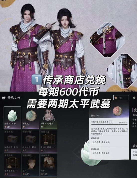 1 传承商店兑换每期600代币需要两期太平武墓