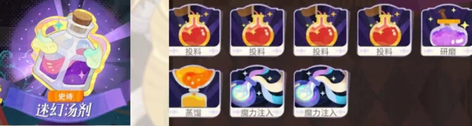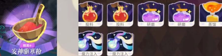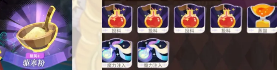投料-投料-投料-研磨-蒸馏-魔力超载-魔力超载-魔力注入-魔力注入
