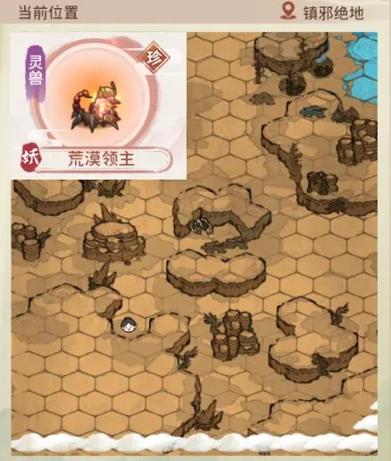 2、荒漠领主:镇绝邪地——地图“最左下角”,“地道”附近。与“重明”伴生