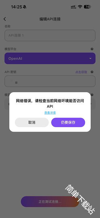 6、若OpenAI等海外大模型保存时显示连接失败,此时需打开梯子重新保存