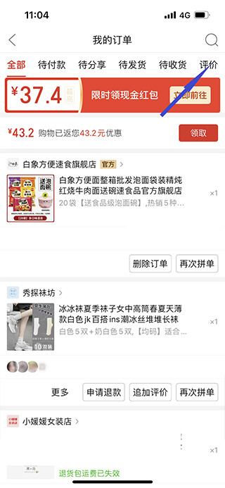 进入我的订单页面,点击上方导航栏中的“评价”;