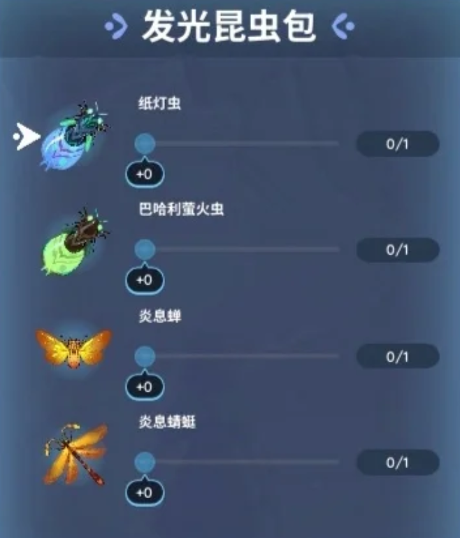 纸灯虫、巴哈利萤火虫、炎息蝉、炎息蜻蜓
