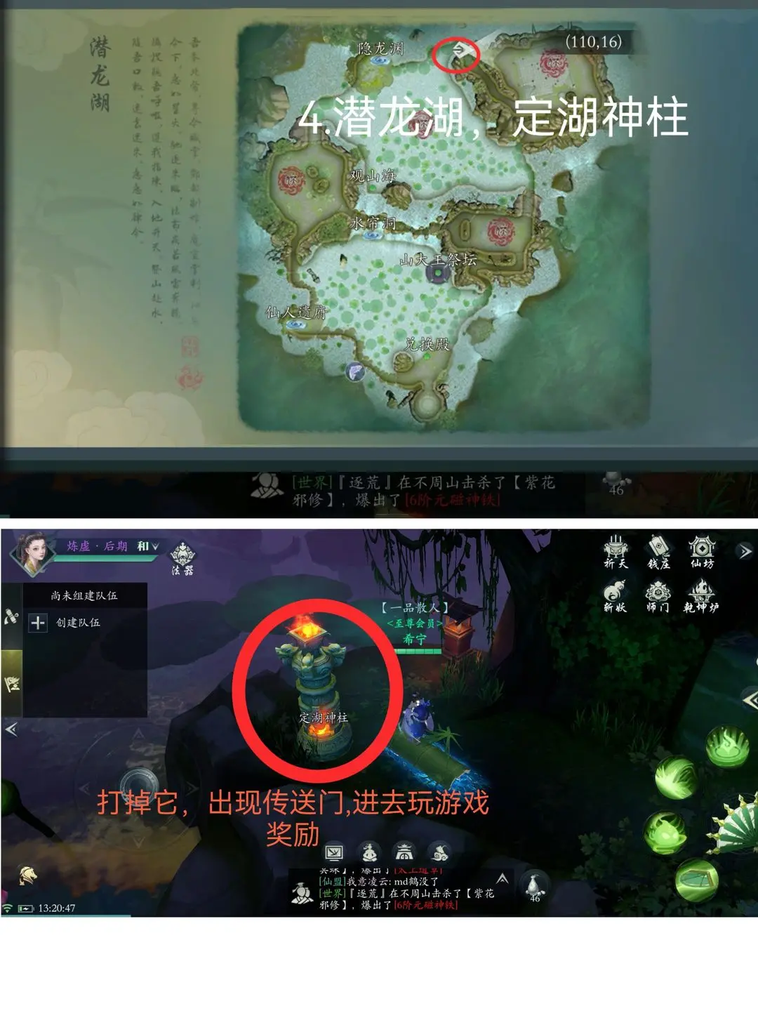 4、潜龙湖,定湖神柱,打掉它出现传送门,进去玩游戏奖励