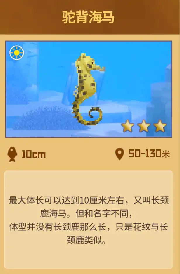 在深海,出现在有水母的地方,背景比较暗,海马也比较暗,需要仔细寻找才能找到。出现捕抓键立马捕抓管它是什么。