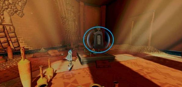 激活建筑顶部的出水点后启动左侧链条,面向建筑入口往右看,可以看到一扇打开的窗户,窗户后方有一个平台,石板就在这个房间里。