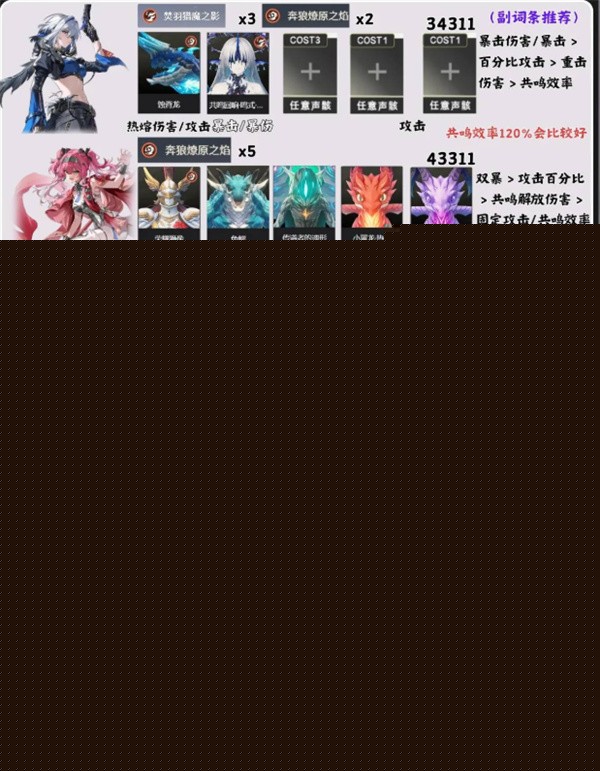 这只队伍强调新机制偏谐机制与共鸣解放输出,莫宁和琳奈都是偏谐机制中最强的2号位与3号位。