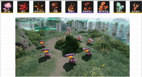 地图上的柱状石菇,黯石,多齿叶都是角色养成的必需品,并且随着现实时间刷新的,早采集早刷新。