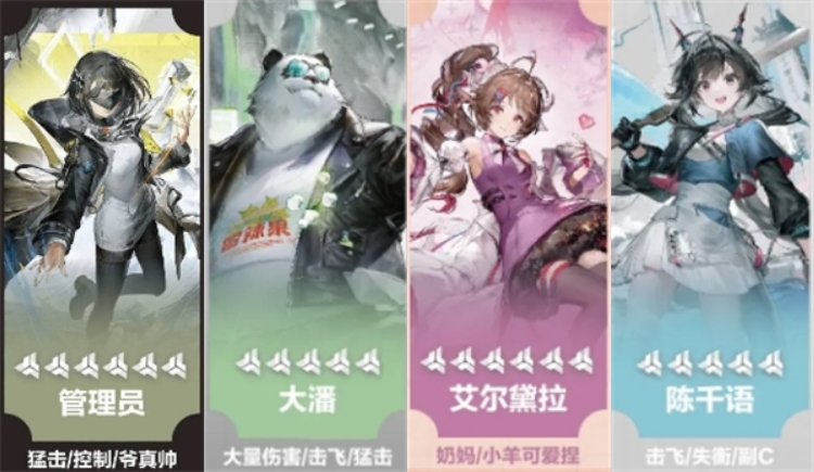 1、阵容组成:管理员、大潘、艾尔黛拉、陈千语