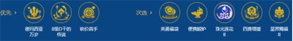 优先选择羁绊专属符文【德玛西亚万岁】。