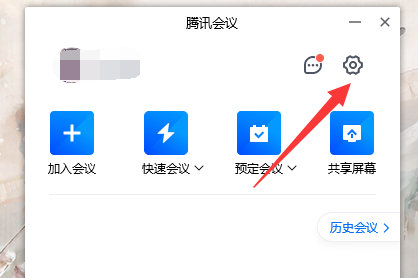 1、首先我们打开腾讯会议,点击右上角的“齿轮”设置。