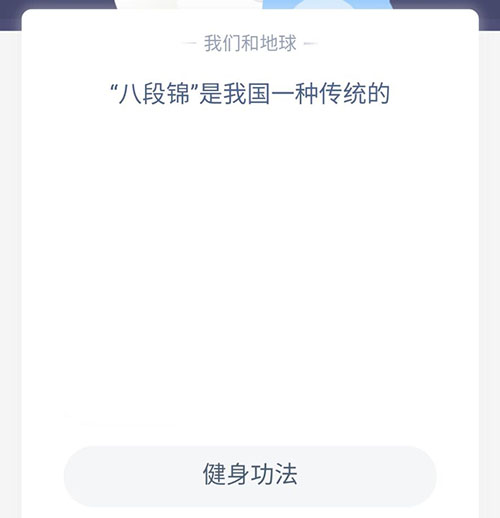 现实生活中对于八段锦,小伙伴了解多少,今天的蚂蚁庄园中的故事就更好的问到大家这个问题,“八段锦”是我国一种传统的?不知道答案的小伙伴赶紧来轻松领取属于自己的小鸡饲料吧,一起来看看正确答案是什么吧。
