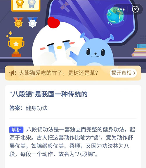 以上就是关于“八段锦”是我国一种传统的?这个问题的正确答案,知道答案的小伙伴赶紧来领取小鸡饲料吧,关于“八段锦”是我国一种传统的?蚂蚁庄园中的正确答案已经为用户更新了,赶紧来关注沙包手游吧,持续为你带来新内容哦。