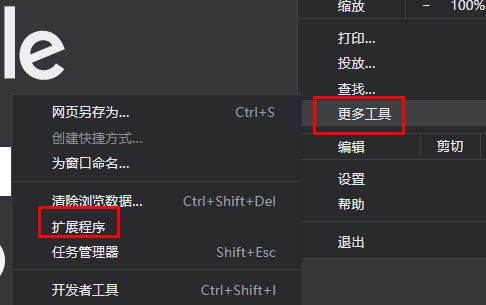 3、在弹出的菜单中依次点击“更多工具”和子菜单中的“扩展程序”。