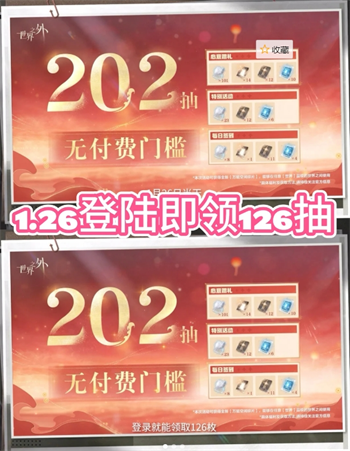 2、21登录游戏即可以免费领126抽