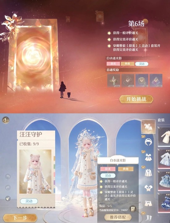 第五关:看要求跟上一轮巅峰赛第六关一样,不过这次用陪跑四星可以过(按搭配要求推荐第一个),也可以用神女套搭配一下几个部件就可以
