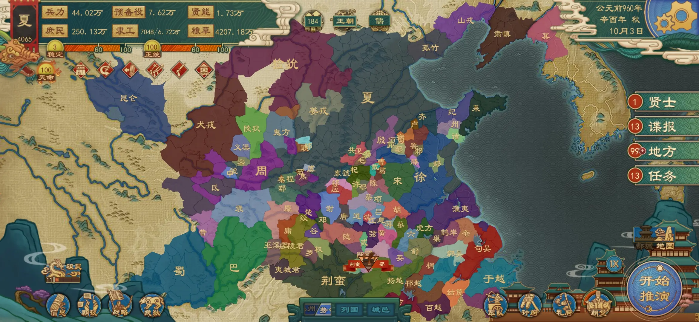 大周列国志德运挑战成就夏木完成方式,略复杂的成就,主要是夏国任意剧本都没有。获得方法是自己分封出来,只要新国家都城在冀州就可以,名字需要多刷刷